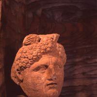 Jordan. Petra, The Petra Archaeological Museum (also known as “The Cave Museum”), head of god Hermes / al Kutba, Nabataean, first century BC