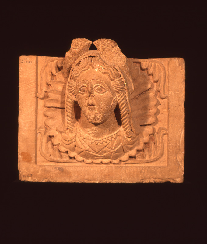 Amman Museum, first century AD. bust of Syrian goddess Atargatis and dolphins from temple at Khirbet at Tannur