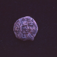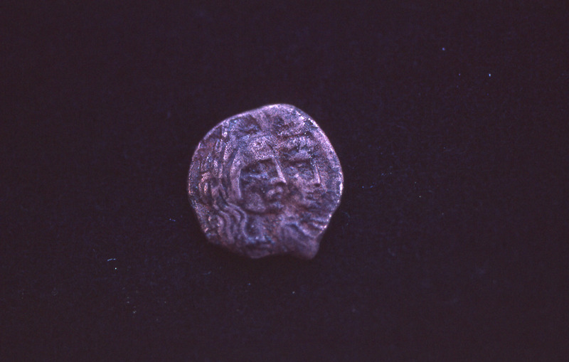 Nabataean coin showing profiles of Aretas IV and Queen Shaqilath