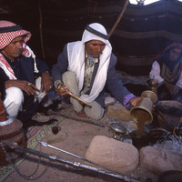Petra, bedouin tent, coffee is poured from grinder into coffee pot