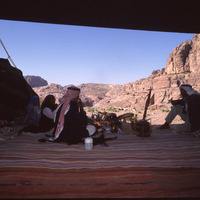 Petra, bedouin tent, from majlis (men's and visitors room) looking to Wadi Thughra