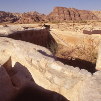 Petra area. (Wadi al Ghurab) Nabataean cistern, now an orchard