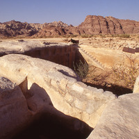 Petra area. (Wadi al Ghurab) Nabataean cistern, now an orchard