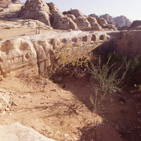 Petra area. (Wadi al Ghurab) Nabataean cistern, now an orchard