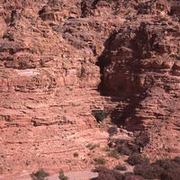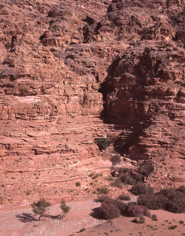 Petra, Wadi Sabra, Nabataean theater and cistern above and ruins