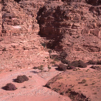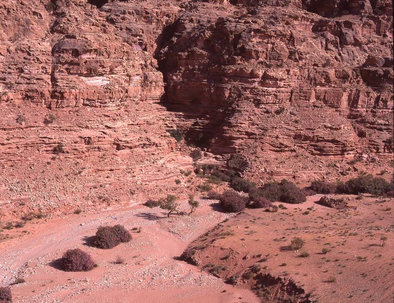 Petra, Wadi Sabra, Nabataean theater and cistern above and ruins