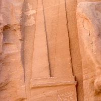 Petra, Siq Umm al Alda (or Siq Umm al Hiran) north of Petra. Twin obelisks cut into rock face