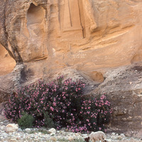 Petra, Siq Umm al Alda (or Siq Umm al Hiran) north of Petra. Twin obelisks cut into rock face