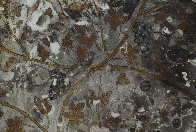 Petra, Siq al-Barid, detail of fresco in painted house, showing foliage and birds