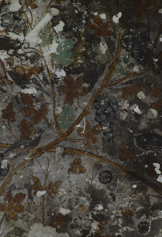 Petra, Siq al-Barid, detail of fresco in painted house, showing foliage and birds