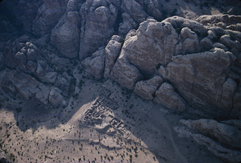 Beidha: The excavated Stone Age village of Beidha, one kilometer south west of Siq al-Barid, Beidha,the white one' in Arabic, dates from the period at the end of the Stone Age known as the Neolithic era, when people in the Near East making the slow, gradual transition from small groups of nomadic hunter-gatherers to settled villagers who domesticated animals and cultivated plants. It was excavated by Mrs. Diana Kirkbride. (Khouri, R. "Petra: a guide to the capital of the Nabataeans" 1986)