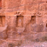 Petra, relief of Isis and other niches, cistern and Nabataean inscriptions of Wadi as Siyyagh