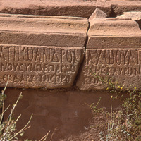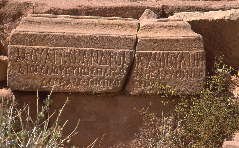 Petra, Greek inscription found 1964 on base for statue of a Roman governor of Arabia Qasr al-Bint temenos