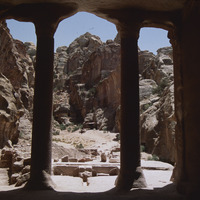 Petra, head of Wadi Farasa from inside garden hall