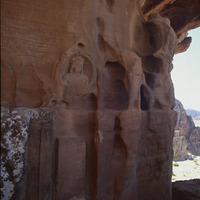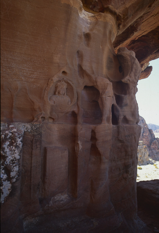 Petra, Dushara block and Dionysus medallion in Wadi Farasa
