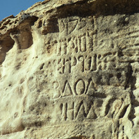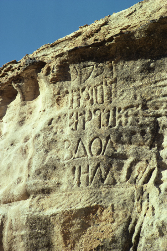 Petra, Bab As Siq, bilingual inscription opposite Obelisk Tomb