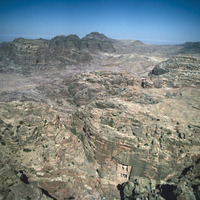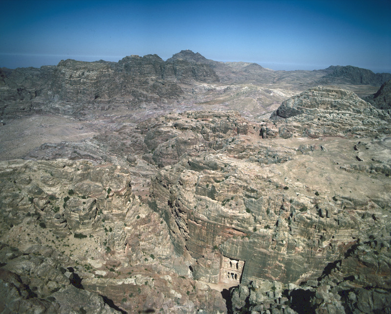 Petra, Khaznet Far'oun (Treasury) and Petra basin, Jabal Haroun in background