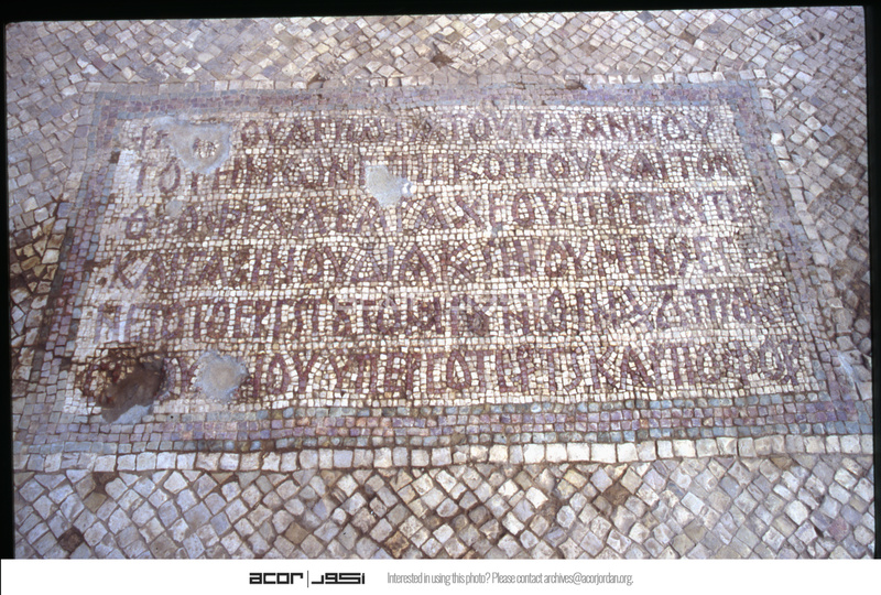 Khirbet Anab al-Kabir - detail of inscription on mosaic floor