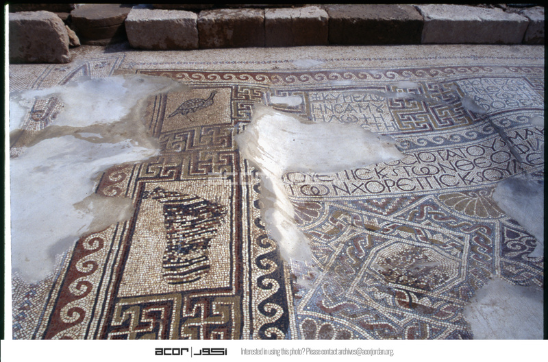 Khirbet Anab al-Kabir - mosaic floor with inscriptions, geometric patterns, and defaced birds