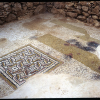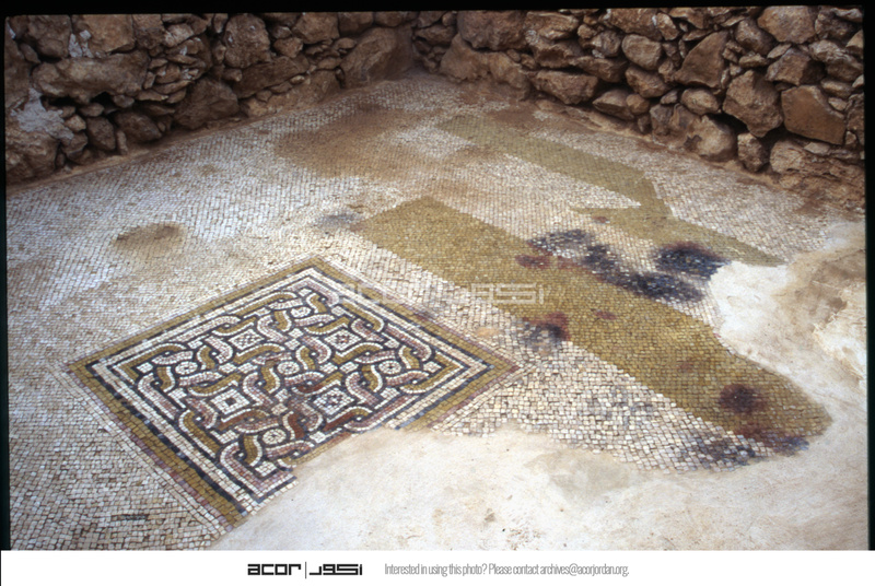 Khirbet Anab al-Kabir - mosaic floor with geometric pattern and burn marks