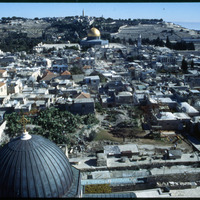 View over Old City with Church of Holy Sepulchre and the Dome of the Rock