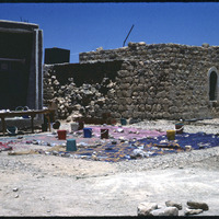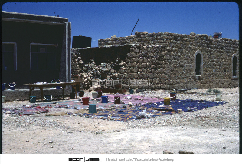 El-Lejjun - 1985 excavation season, pottery washing station next to 1910 Ottoman building and modern school