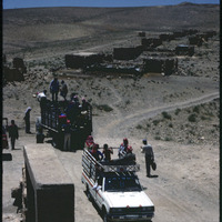 El-Lejjun - 1985 excavation season, local workers arriving by tractor