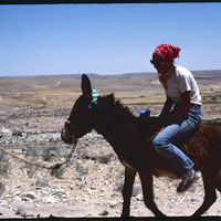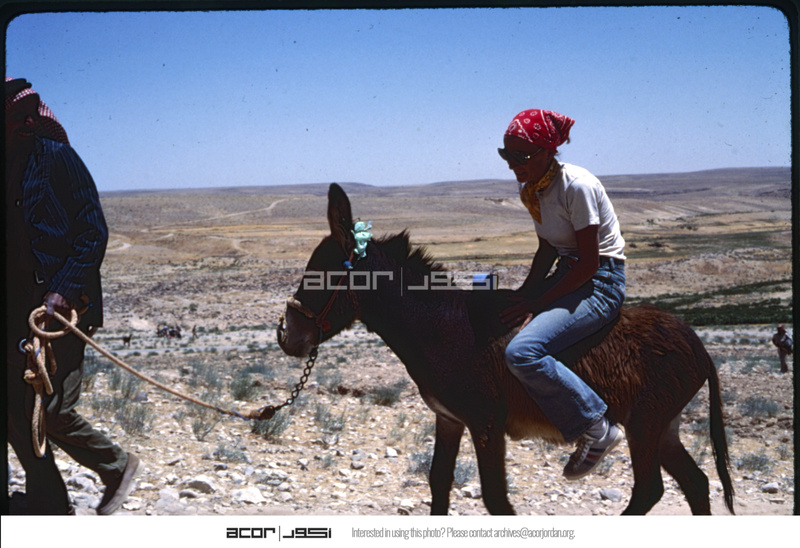 El-Lejjun - 1980 excavation season, staff riding a donkey
