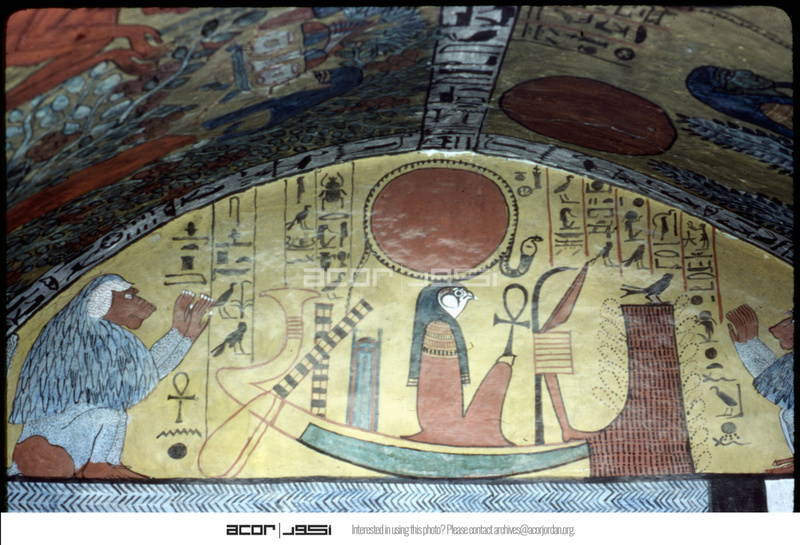 Deir el-Medina (Tombs of Workers) - Falcon and baboon on ceiling
