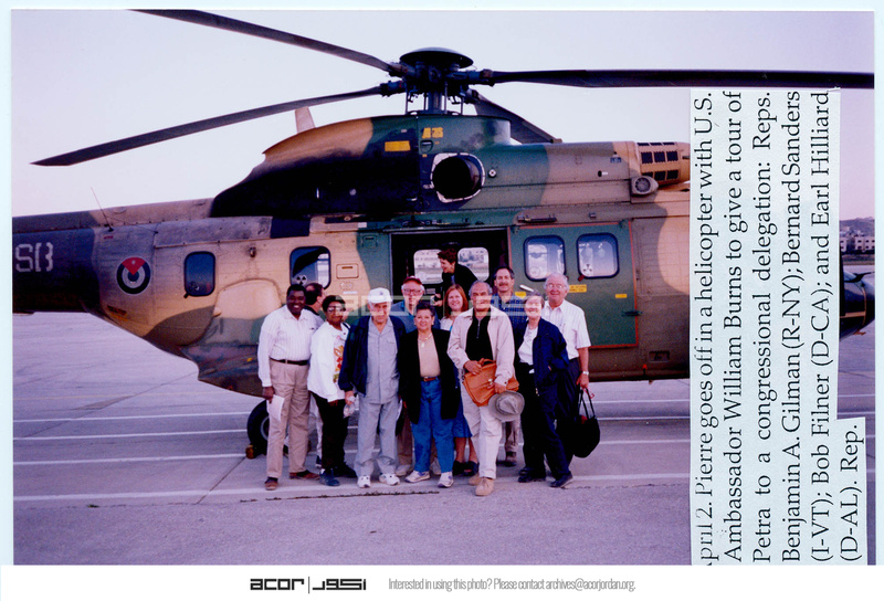 Pierre Bikai leads a tour of Petra with US Ambassador William Burns and US Representatives Benjamin A. Gilman, Bernie Sanders, Bob Filner, and Earl Hilliard