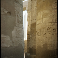 Detail of decorated columns in Hypostyle Hall of Karnak