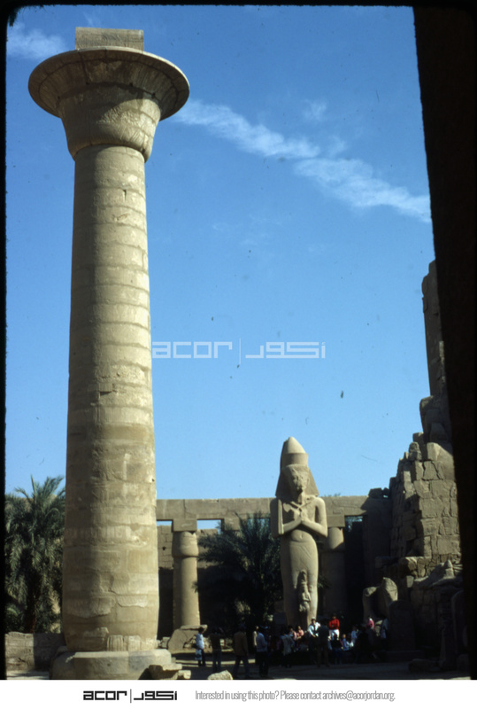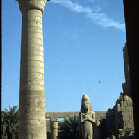 tatue of Pinedjem I in Karnak with column with open papyrus capital