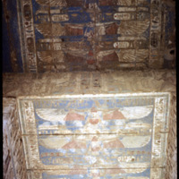 Hieroglyphics and cartouches on ceiling in Medinet Habu
