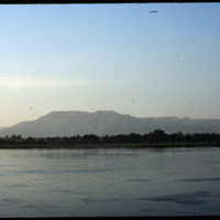 Luxor, view to West Bank across Nile from hotel at sunrise