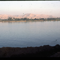 Luxor, view to West Bank across Nile from hotel at sunrise