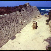 Caesarea - ruins of Crusader wall and moat along Mediterranean