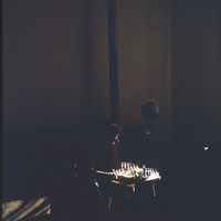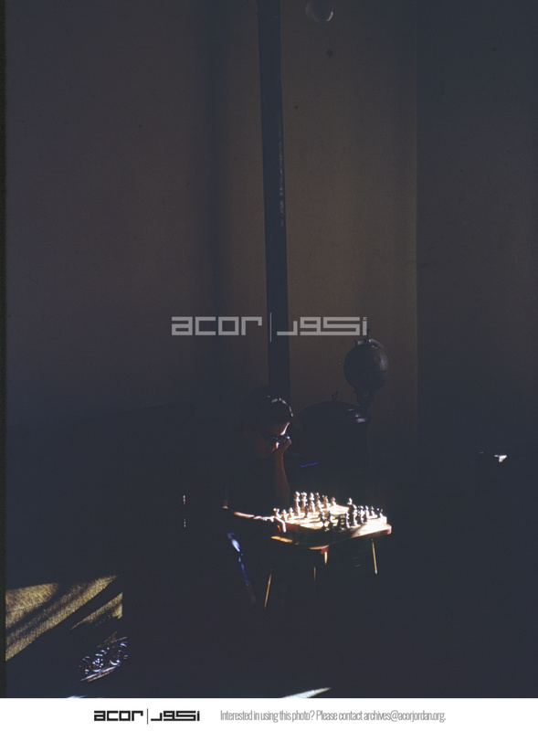 Living room of Nabulsi Building apartment with Robert Schick playing chess