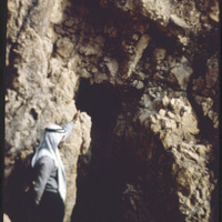 Qumran - unidentified man [guard?] in front of cave entrance