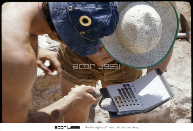 Caesarea 1974 excavation - Taking down a Munsell Reading