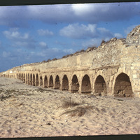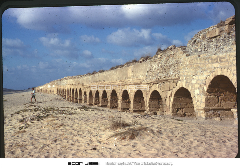 Caesarea 1974 excavation - aqueduct - Mediterranean Sea on left