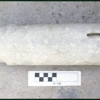 Excavation of the lower church in el-Quweisma, cylindrical colonette