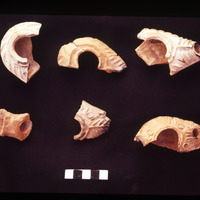 Excavation of the lower church in el-Quweisma, pottery oil lamps