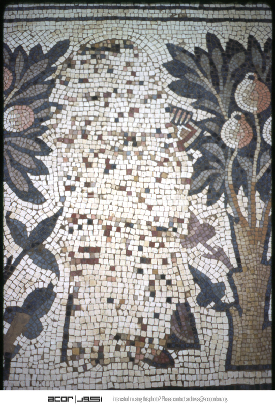 Umm al-Rasas - Church of St. Stephen - damaged mosaic of person between two fruit trees