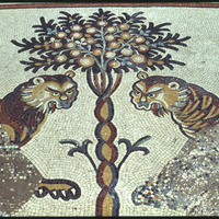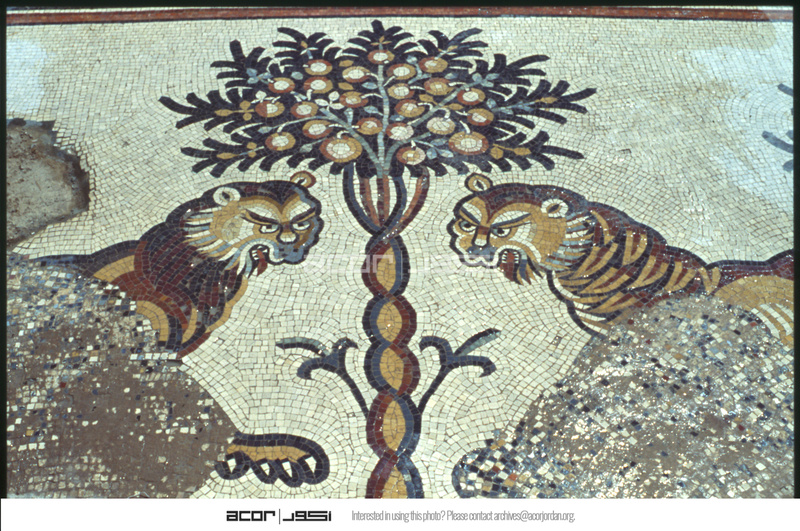 Umm al-Rases - Church of the Lions - mosaics depicting lions and a fruit tree
