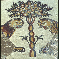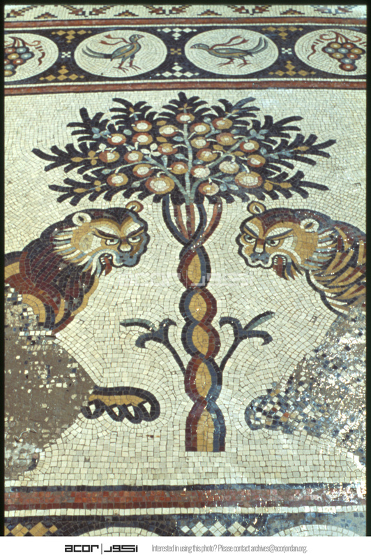 Umm al-Rases - Church of the Lions - mosaics depicting lions and a fruit tree