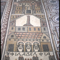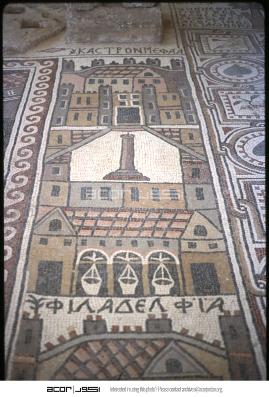 Umm al-Rasas - Church of St. Stephen - mosaic depicting Philadelphia (Amman) and Kastron Mefaa