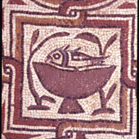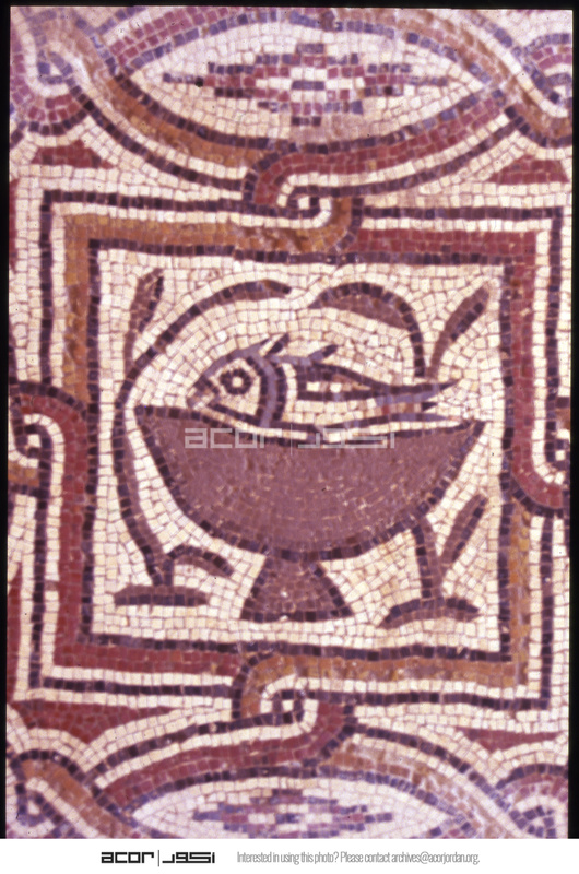 Umm er-Rasas - mosaic depicting fish on a plate in Church of St. Stephen
