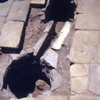 Western Portico - Cistern of Phase IV, drain head (reservoir), and a connecting channel. Sq. L2; Loc 07, 09