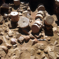 Paving stones of upper floor collapsed over baptistery. Area X. Sq. E3; Locus 30B