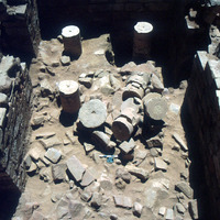 Paving stones of upper floor collapsed over baptistery. Area X. Sq. E3; Locus 30B
